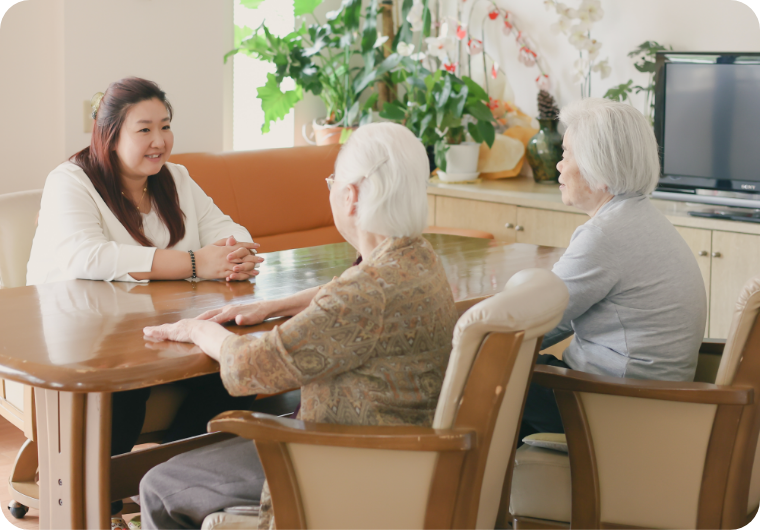 利用者様と笑い合い、語り合い、ときには悩みを共有しながら、一日一日を大切に重ねていく――