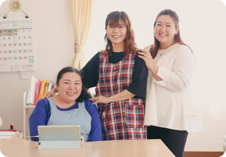 スキルや経験よりも大事なのは、やさしいまなざしと、日常の小さな喜びを一緒に分かち合える心です。スタッフ同士も「1日1笑い」を目標に、和やかであたたかな関係を大切にしています。